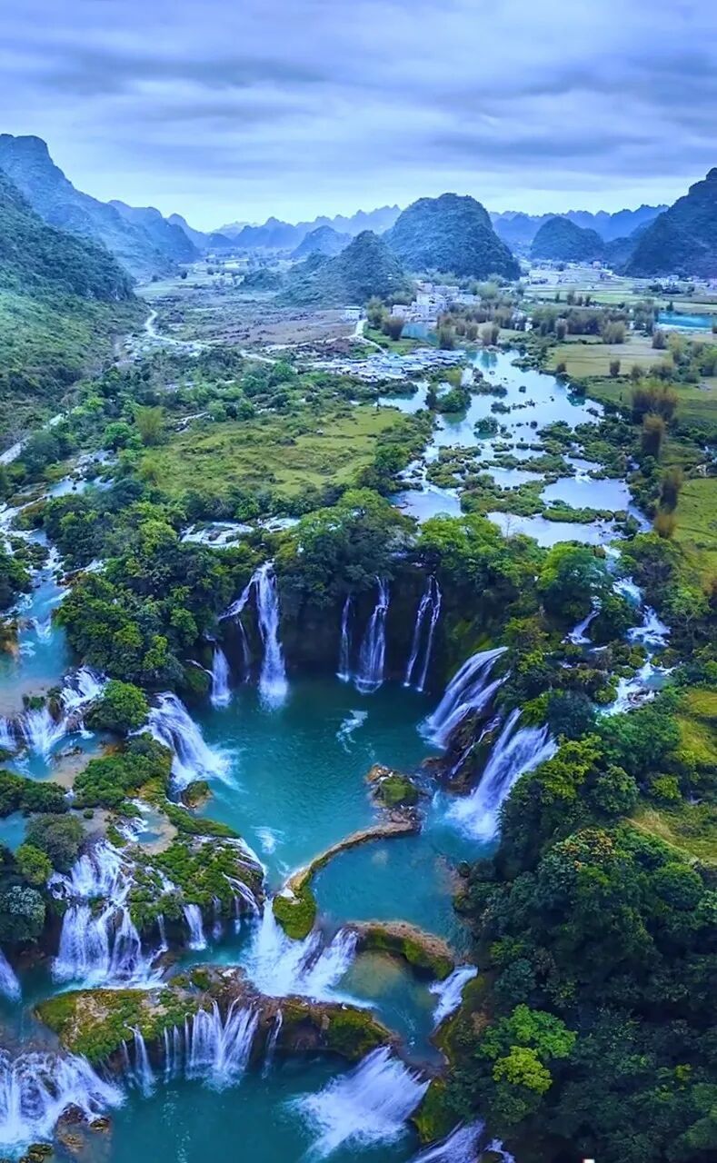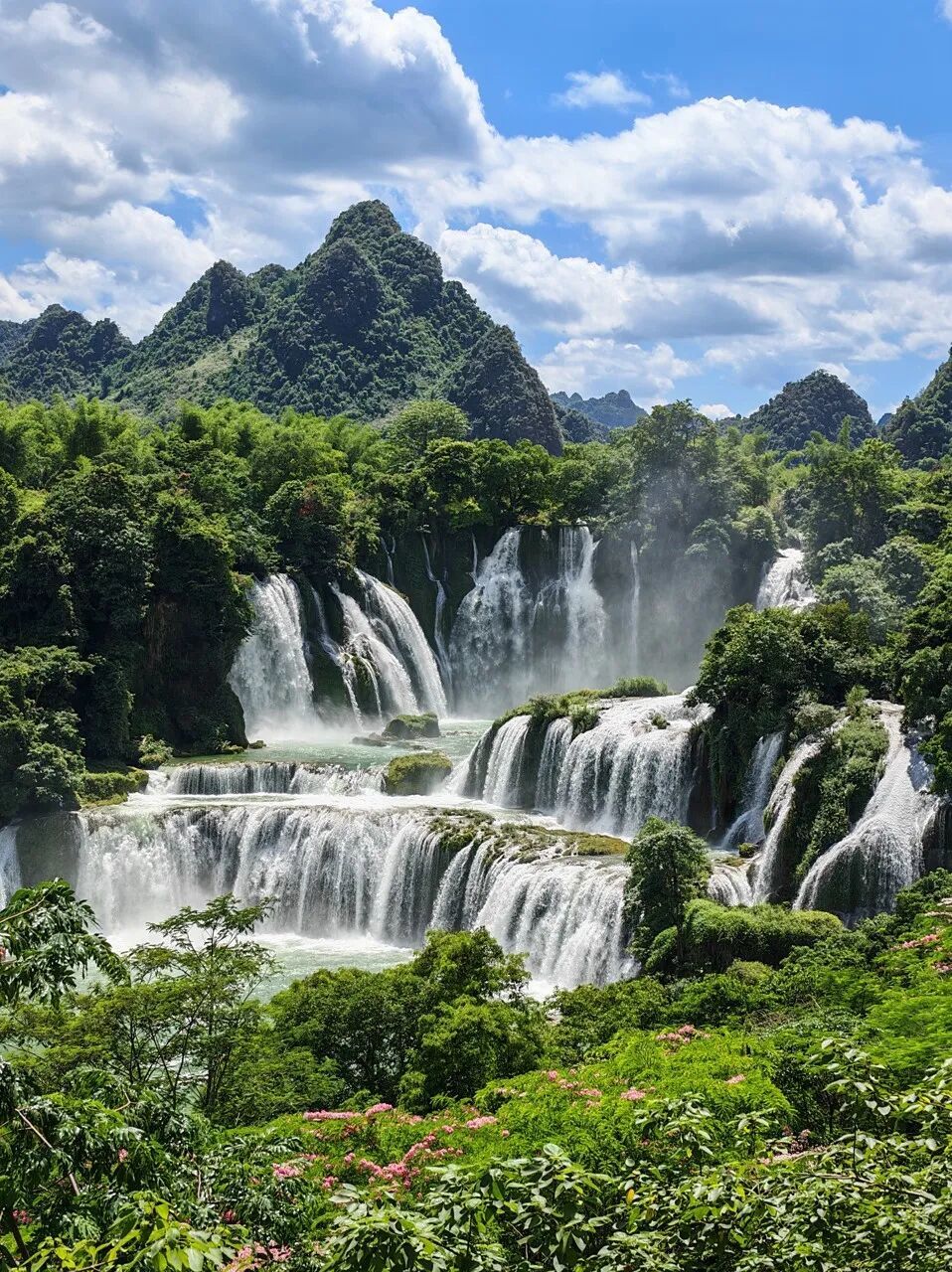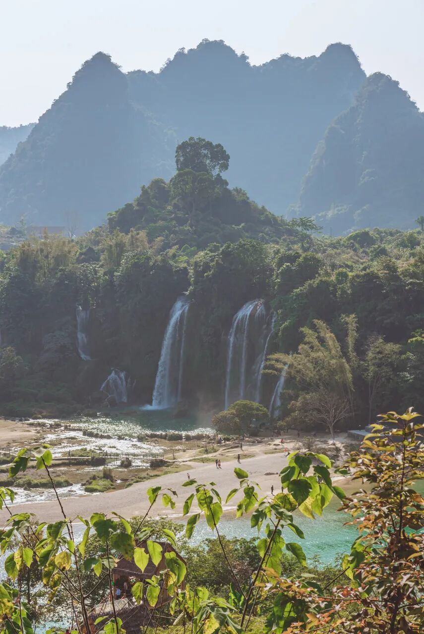 周边是典型的喀斯特地貌,壮族村落散落在青山间,戴着斗笠的农人在稻田里劳作,偶尔能听见越南商贩用夹生中文吆喝......瀑布的轰鸣声里,交织着两国边民的生活气息。